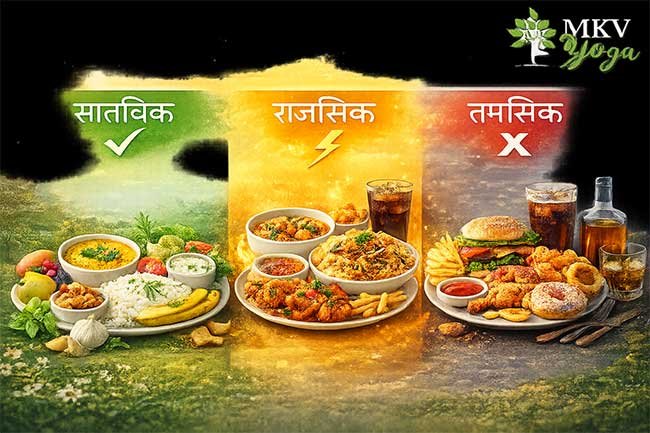 हम साधारणतया यह मानते हैं कि खाना सिर्फ शरीर को ऊर्जा देने के लिए होता है। लेकिन योग और भारतीय दर्शन के अनुसार, भोजन का असर सिर्फ शरीर पर ही नहीं, बल्कि हमारे मन और स्वभाव पर भी पड़ता है। यही कारण है कि खाना तीन भागों में बांटा गया है — सात्विक, राजसिक और तामसिक भोजन। अगर हम इसे समझ लें, तो हम अपने जीवन में बेहतर संतुलन ला सकते हैं।