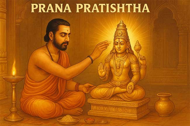 So, Prana Pratishtha means establishing the divine presence in the idol. It is believed that during the ritual, the divine consciousness of the deity descends into the murti, making it fit for worship.